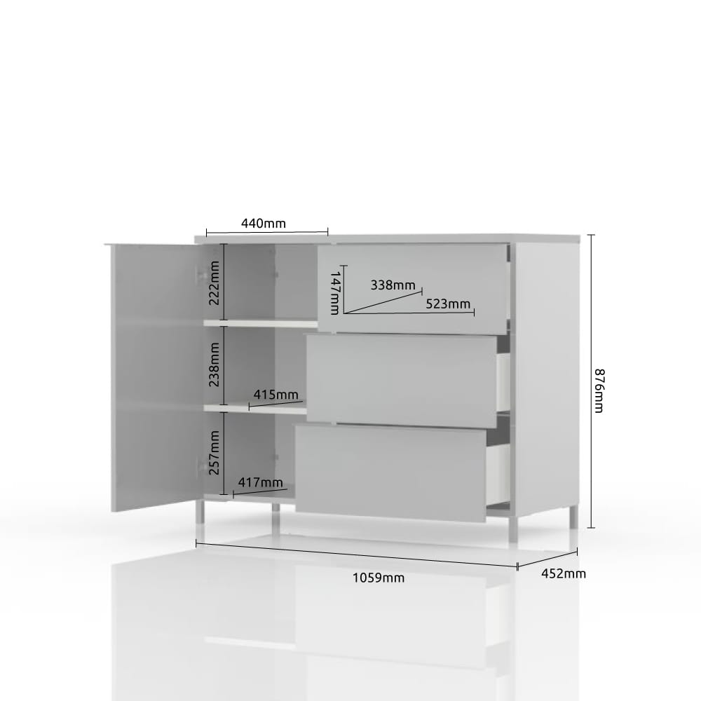 Comodă 1 ușă, 3 sertare